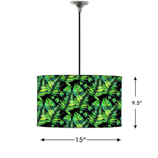 Ceiling Lamp Hanging Drum Lampshade - Dark Green Tropical Leaf