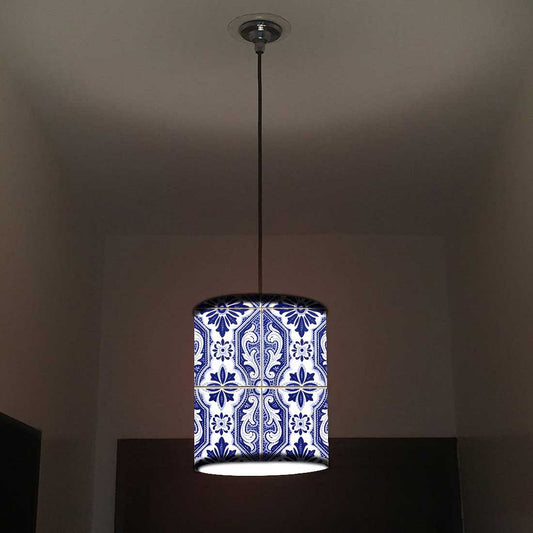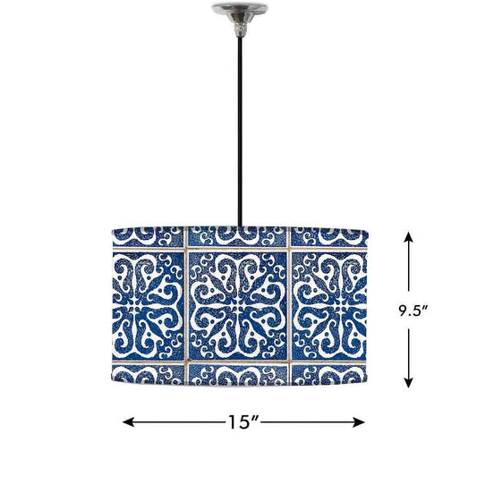 Ceiling Lamp Hanging Drum Lampshade - Tiles Pattern