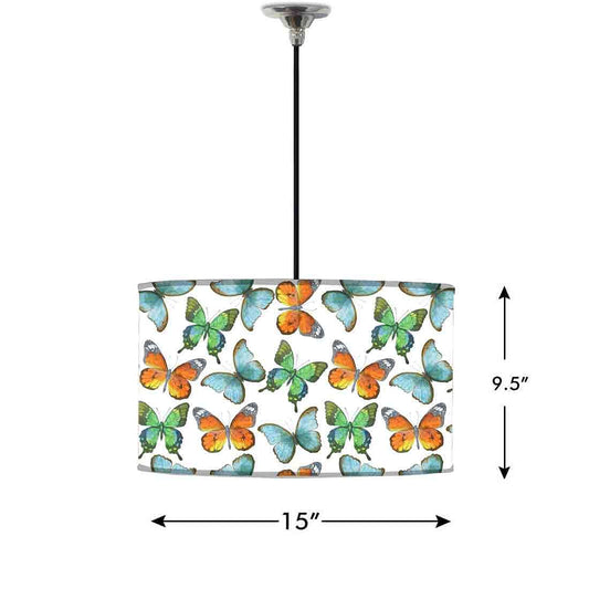 Ceiling Lamp Hanging Drum Lampshade - Watercolor Butterflies