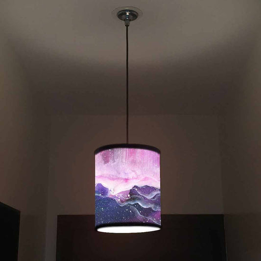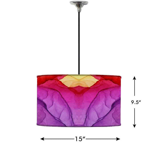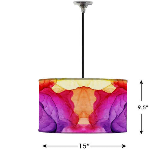 Ceiling Lamp Hanging Drum Lampshade - Purple Multicolor Ink Watercolor