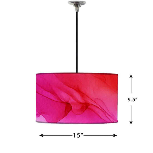 Ceiling Lamp Hanging Drum Lampshade - Red Pink Ink Watercolor