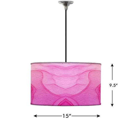 Ceiling Lamp Hanging Drum Lampshade - Pink White Ink Watercolor