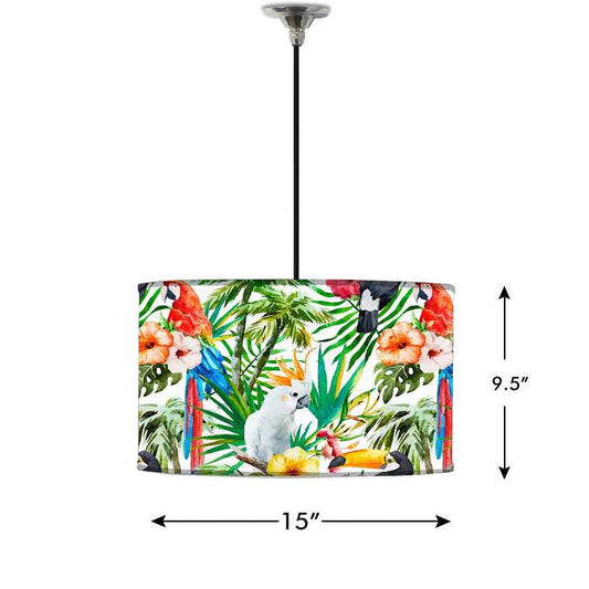 Ceiling Lamp Hanging Drum Lampshade - Flowers Pattern