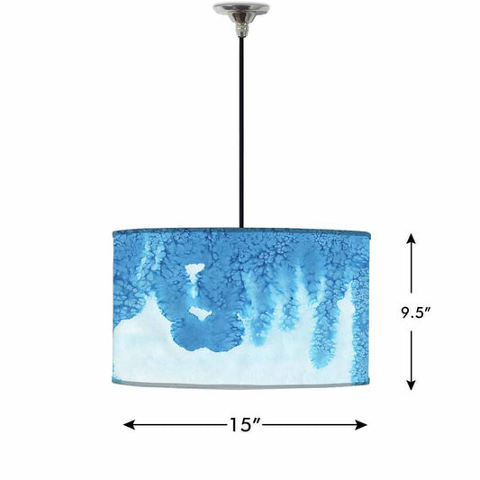 Ceiling Hanging Pendant Lamp Shade - Blue Ink Watercolor