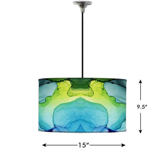 Ceiling Lamp Hanging Drum Lampshade - Green Purple Ink Watercolor