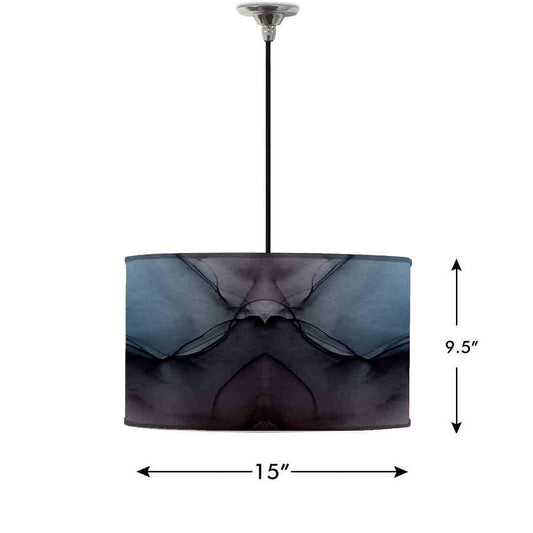 Ceiling Lamp Hanging Drum Lampshade - Black Blue Ink Watercolor