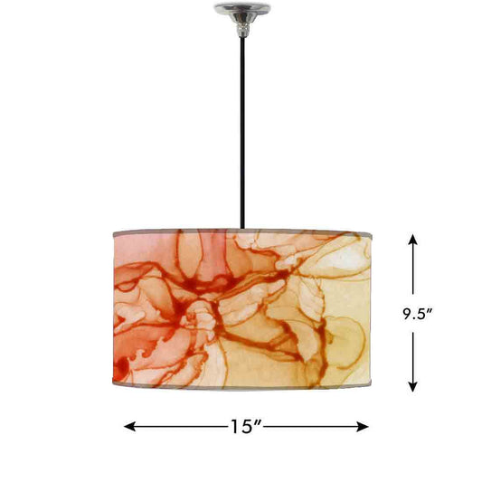 Ceiling Lamp Hanging Drum Lampshade - Orange Golden Ink Watercolor