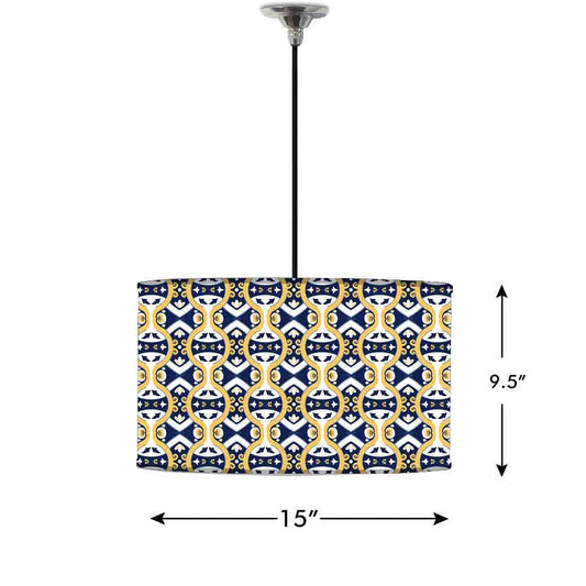 Ceiling Lamp Hanging Drum Lampshade - Spanish Tiles Pattern