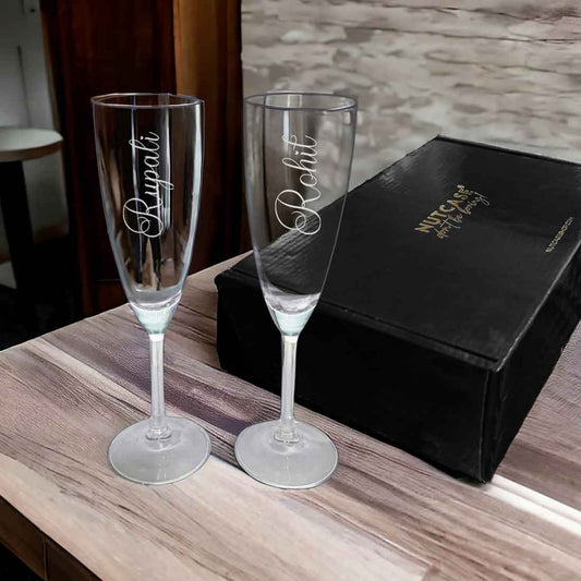 Nutcase Personalized Champagne glasses are not just elegant glassware; they are vessels of celebration, adding a touch of personalized charm to any occasion. These high-quality champagne glasses, crafted from ultra-clear glass, offer a unique opportunity to infuse your special moments with individuality. Whether you choose to engrave your name, initials, or monogram, these flute glasses elevate any event from good to great.