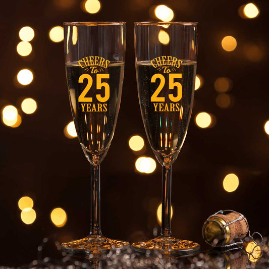 25th Anniversary Gifts for Couples with Champagne Glass Set - Available in Black