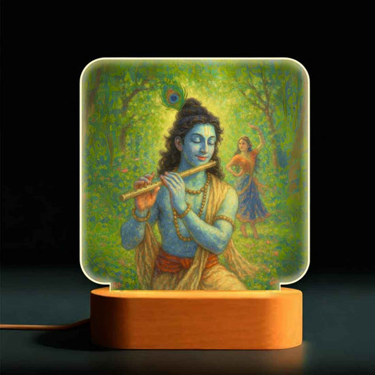 Krishna LED Light with Wooden Base – Divine Night Lamp for Home Temple & Decor