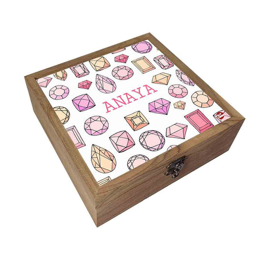Personalized Wooden Jewellery Box for Women - Colorful Diamond