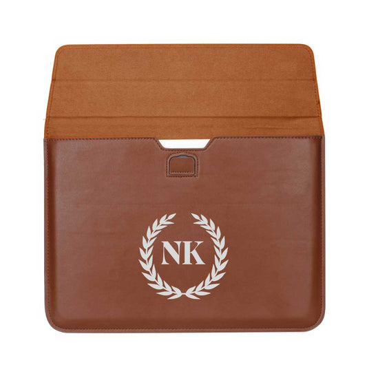 Custom Made Leather Laptop Sleeve - Add Your Initial Crown Leaves