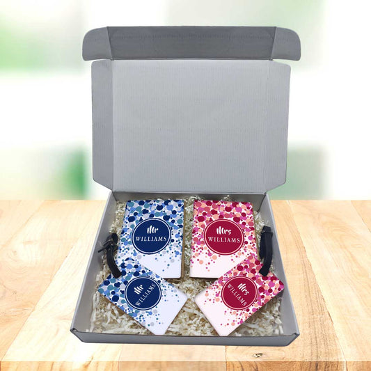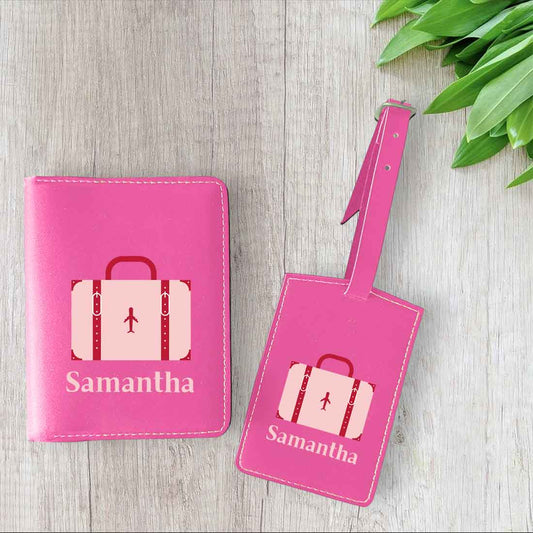 Personalize Couples Mr & Mrs Passport Cover with Luggage Tag Gift Set