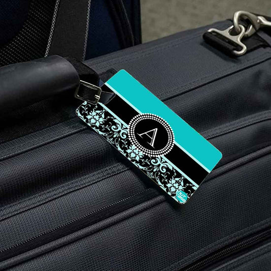 Personalized Designer Luggage Travel Baggage Tags Set of 2 - Blue Damask