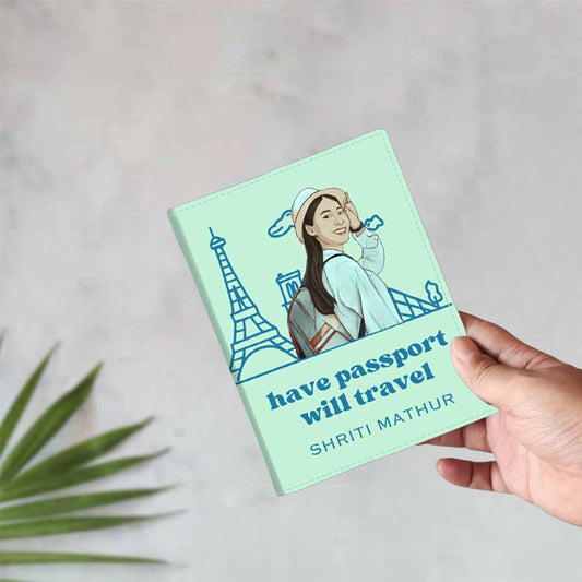 Personalised Passport Cover With Caricature Art Photo & Name