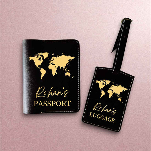 Personalized Passport Cover With Luggage Tag Set - Map