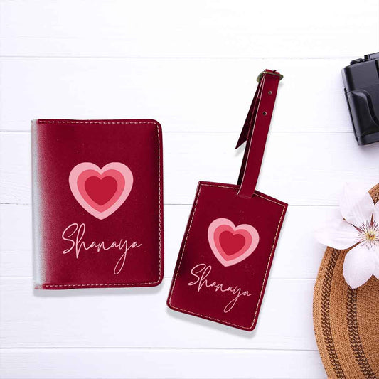 Pu Leather Personalized Passport Cover and Luggage Tag - Heart