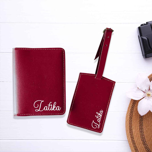 Customized Passport Case with Card Slots Faux Leather Travel Wallet & Luggage Tag Set