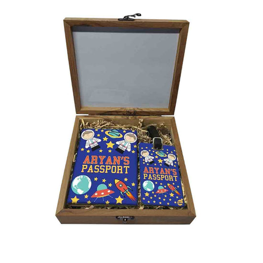 Buy Nutcase personalized passport cover luggage tag set in a teak wood gift box. Perfect customized gift for all travel lovers. Custom made premium teak wood box with passport holder baggage tags set with name. Available in range of over 100s of fun and playful designs only on India's leading Personalized Gift Shop Online At Nutcaseshop.com