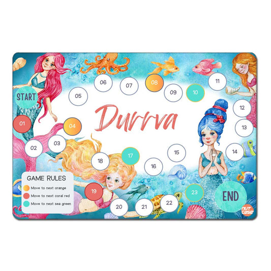 Personalized Table mat for Girls Board Game Design With Dice & Pieces - Under The Sea Mermaid Theme