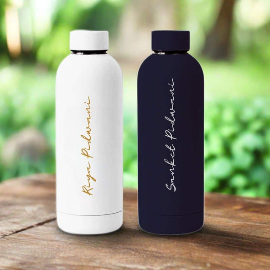 Customized Water Bottles with Names Stainless Steel Double Insulated Water Bottles for Travel Office Gym Home BPA Free, Leakproof-SET OF 2