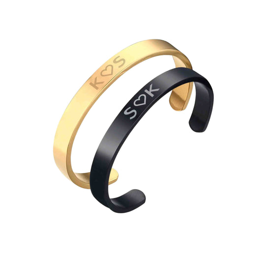 Custom Couples Bracelet Matching Bracelets Valentines Day Gift-Gold & Black-Initials