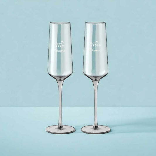 Custom Champagne Glasses for Couple - Engraved Premium Champagne Flutes Mr & Mrs