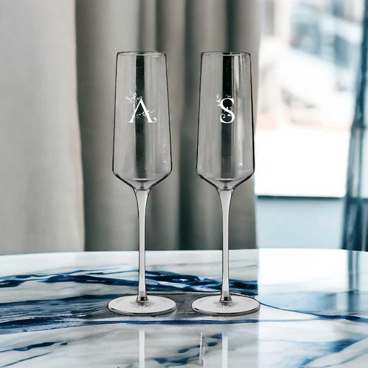 Champagne Flutes with Engraving Initial For Couple - Custom Premium Champagne Flutes