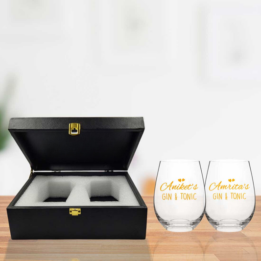 Customized Gin And Tonic Glasses Set of 2 With Gift Box