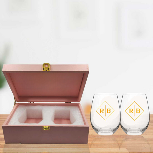 Classy Customized Stemless Wine Glass Set of 2 With Gift Box