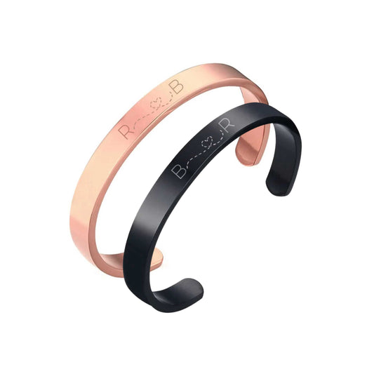 Custom Couples Bracelet Matching Bracelets Valentines Day Gift-Rose Gold & Black-Initials