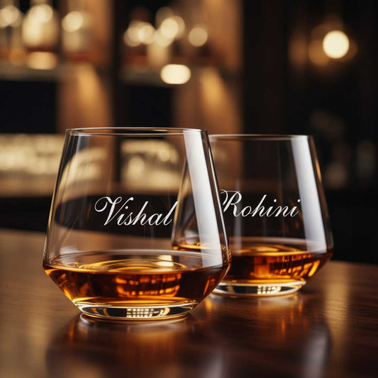 Make any night out with the guys extra special with Nutcase personalized whiskey glasses. Add some personal flair by engraving initials or names on these custom glassware. The customization makes them the perfect gift for the whiskey lover in your life-be it your friends or significant other. Use our personalized software and add your customisation, we'll engrave these sturdy yet stylish glasses that will hold your favorite whiskey or bourbon for years to come. Make a toast with your very own personalized whiskey ware and sip in style.