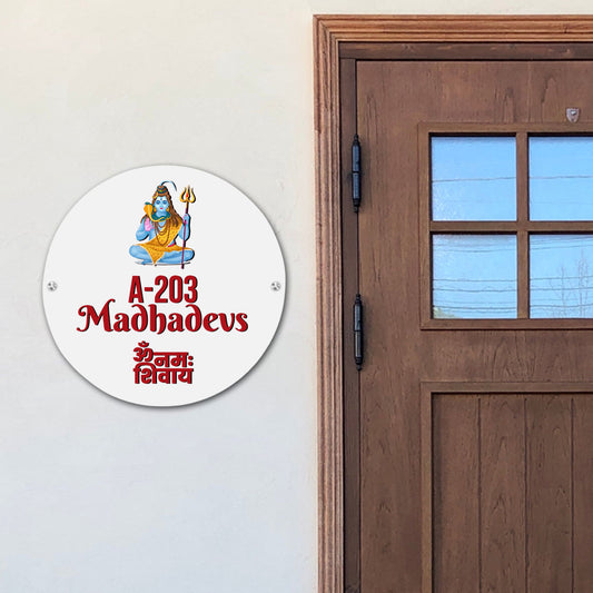 Mahadev Name Plate for Home Round Nameplate with Lord Shiva - Available in Wood and Acrylic