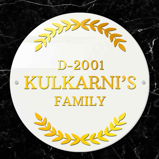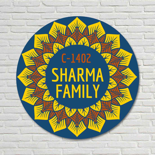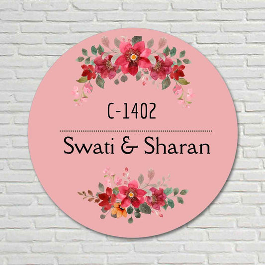 Personalized Door Round Name Plate for Home Flats Bungalow - Classic Floral