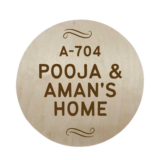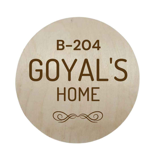 Engraved Wooden Name Plate for Home Flat Bungalows-Round