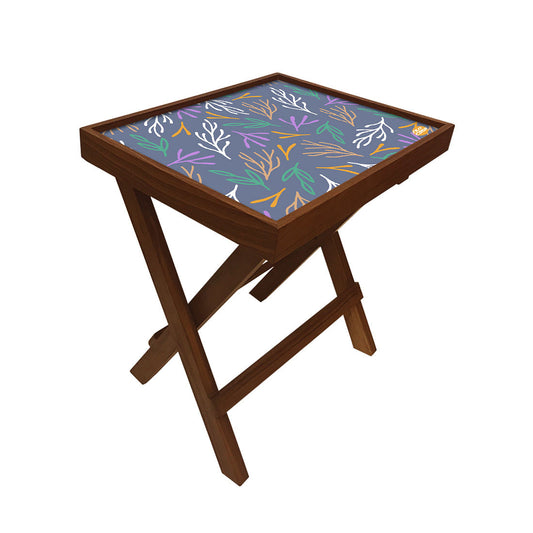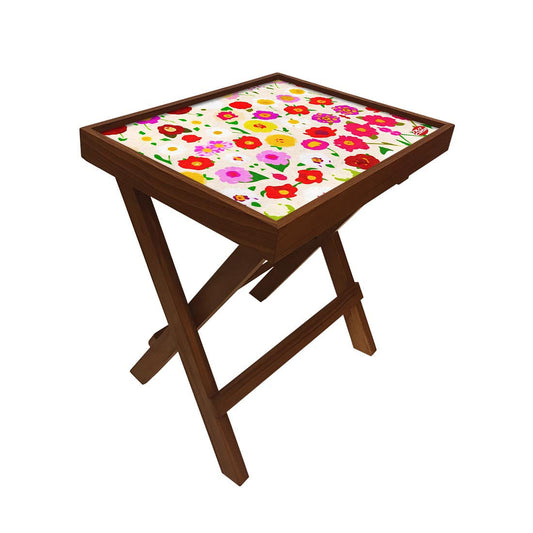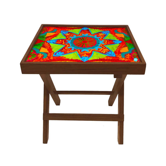 Nutcase Folding Printed Side Table - Teak Wood -Indian Flower