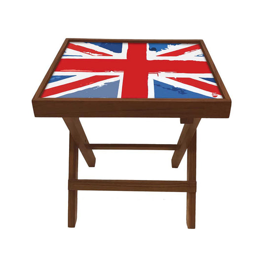 Nutcase Folding Living Room Side Table - Teak Wood -British Flag
