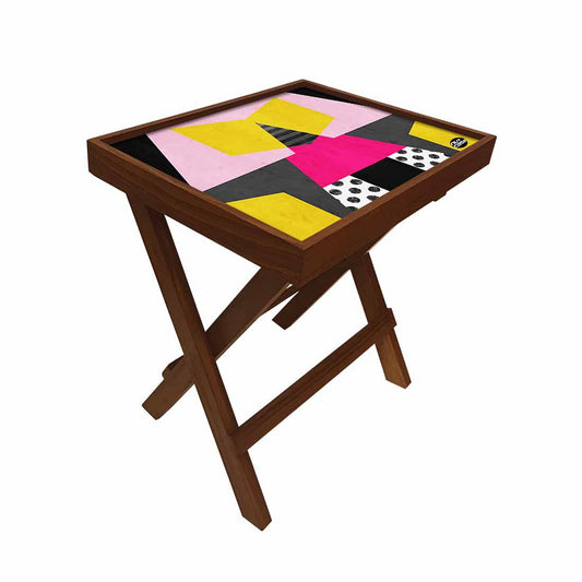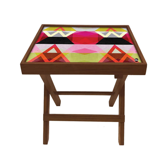 Folding Side Table Near Bed - Teak Wood -Geometric