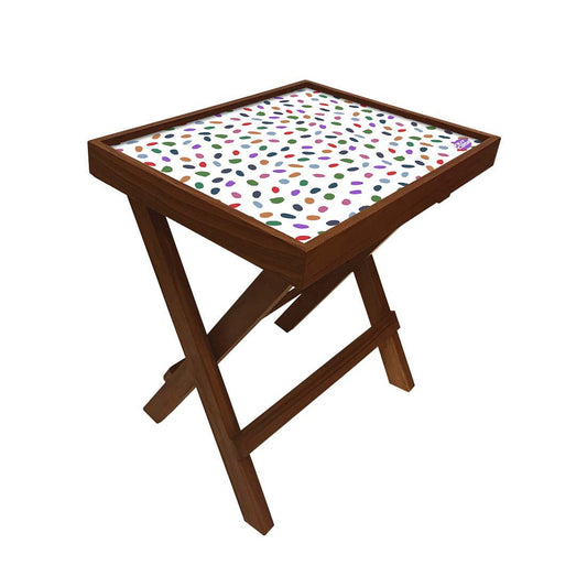 Folding Side Table Bed - Teak Wood - Cute Dots