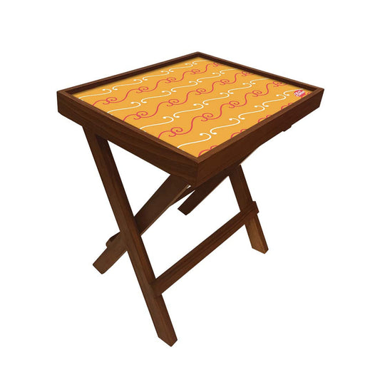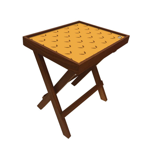 Nutcase Folding Wooden Side Table - Teak Wood -Mustard