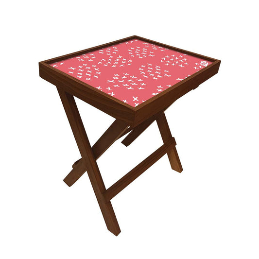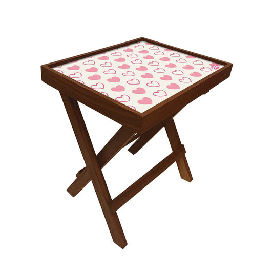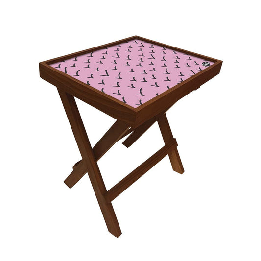 Folding Side Table Decor - Teak Wood -Cute Pink