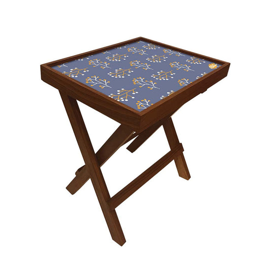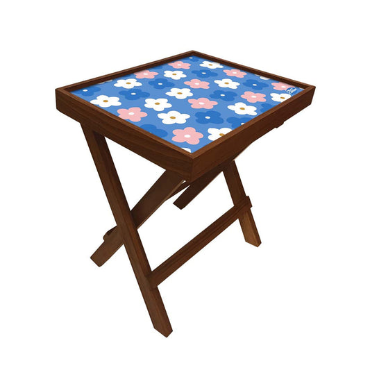 Nutcase Folding Side Table - Teak Wood -Cute Flower Blue