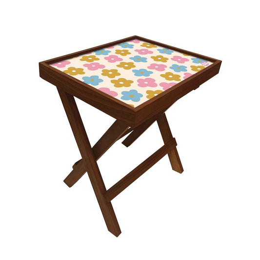 Folding Side Table - Teak Wood -Cute Flower Multicolor