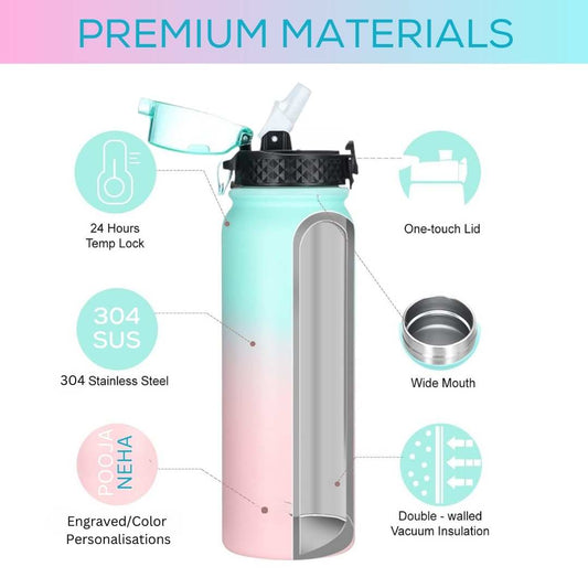 Nutcase Personalized Insulated Water Bottle - 600ml Premium 304 Stainless Steel Sipper Bottle