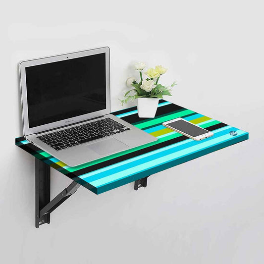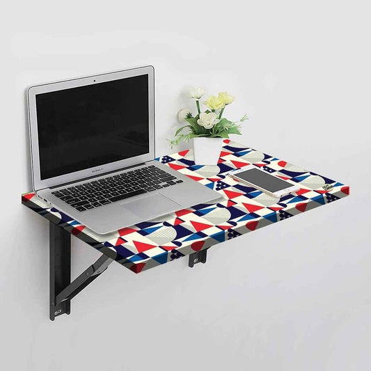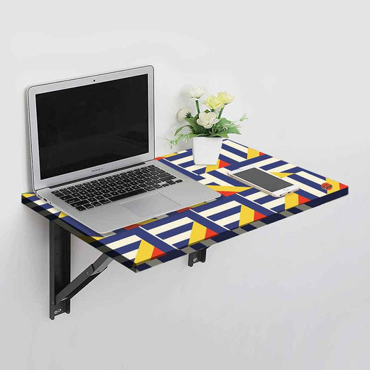 Wall Mounted Folding Work and Study Table Desk - Blue Geometric