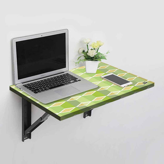 Wall Mounted Folding Study Table Desk - Green Geometric