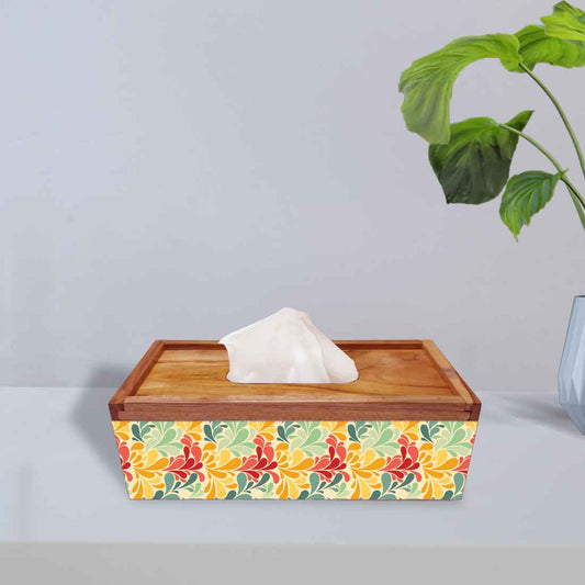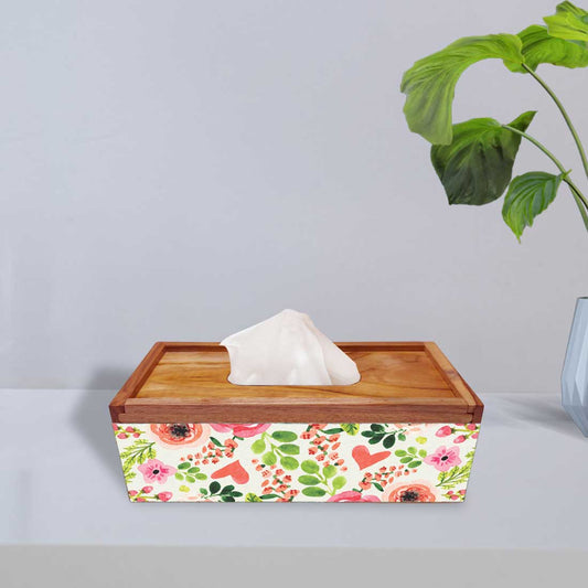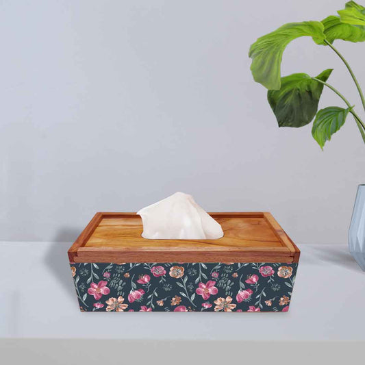 Wooden Rectangular Tissue Box Cover for Home Kitchen - Flowers