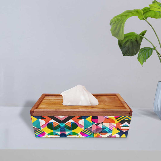 Wooden Tissue Cover Box for Home Office Car - Multicolor