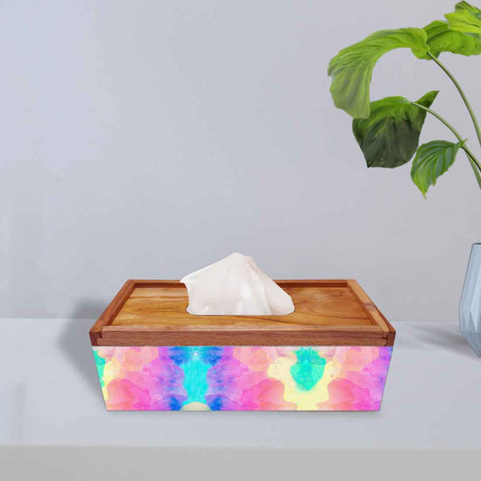 Rectangular Tissue Stand Holder Wooden for Home Office - Watercolor